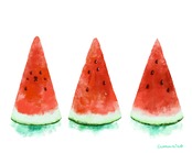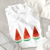 みずみずしいスイカがプリントされたTシャツです。