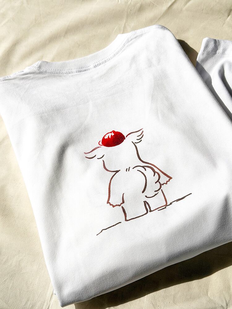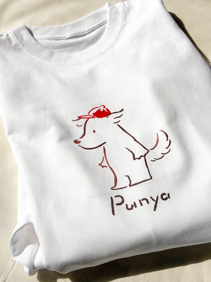 赤い帽子とくるっとしたしっぽがトレードマークの犬。絵を描くのが好き。臆病で泣き虫。